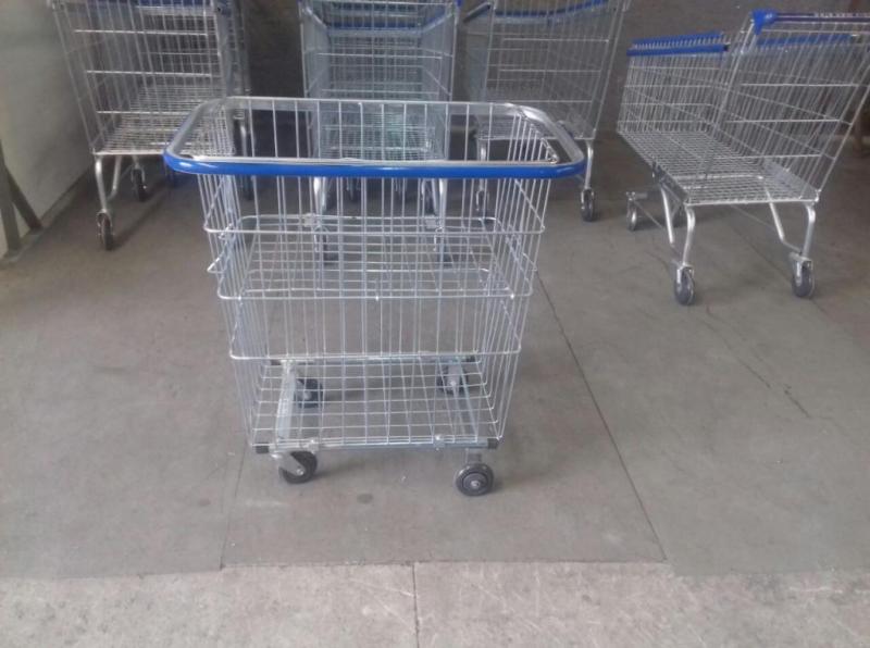 O carrinho de compra é um produto leve e de fácil manuseio. Isso se deve ao material empregado na sua fabricação: corpo em aço e arame galvanizados, rodas em plástico injetado, sendo duas fixas e duas giratórias.